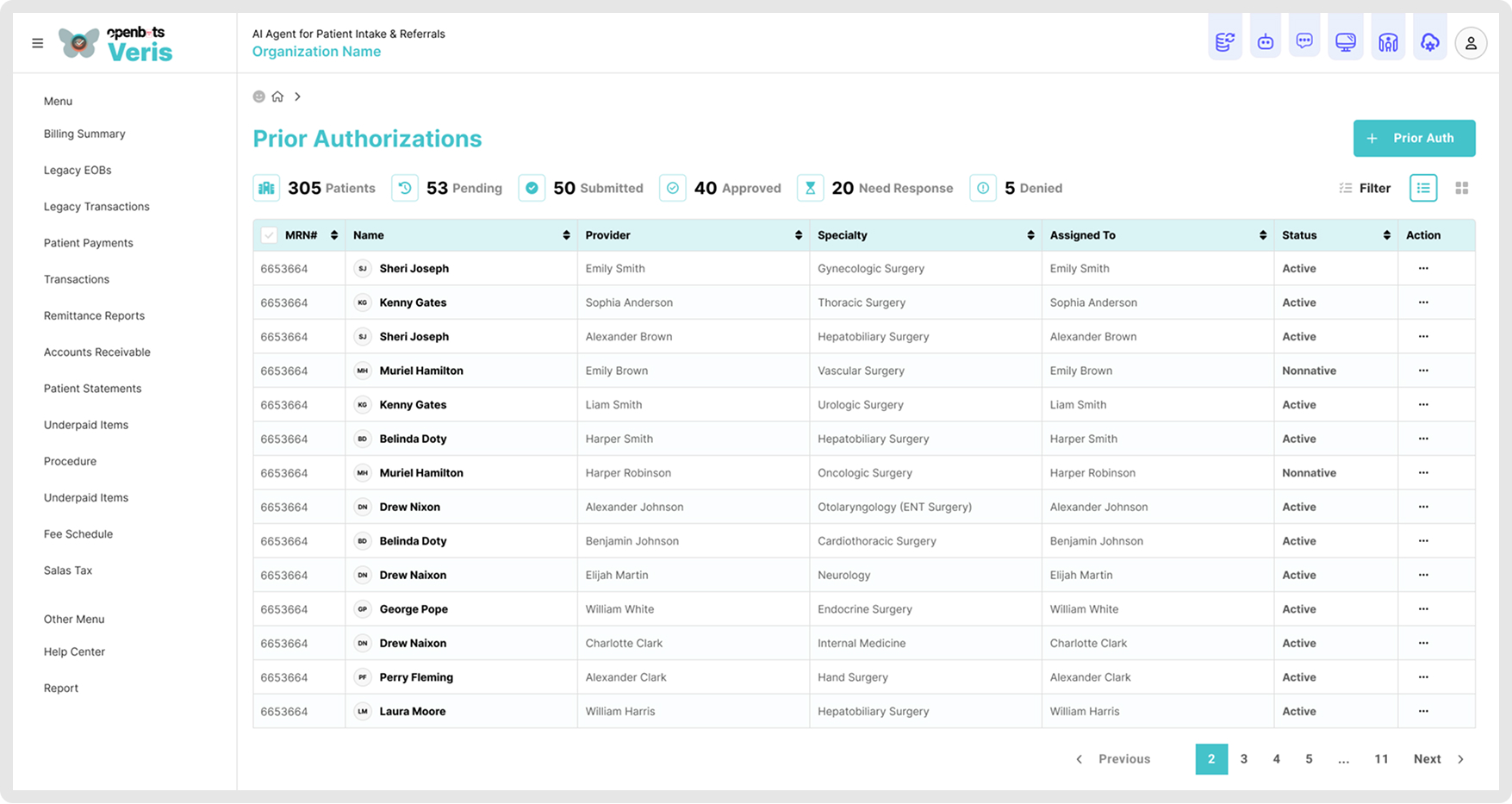Veris prepares and submits prior authorization requests, tracks status, and proactively resolves issues before they become problems.